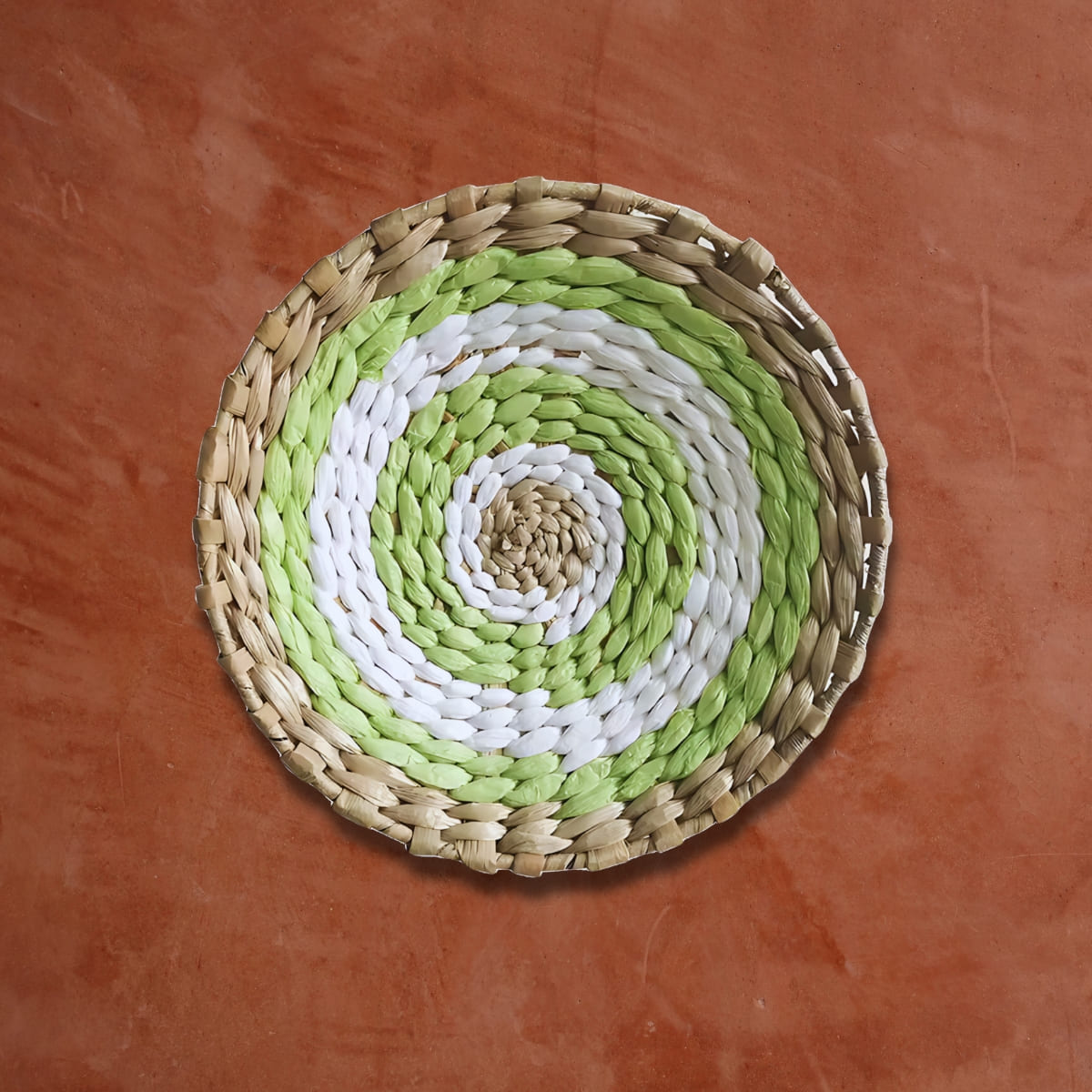 Déco murale en rotin rond vert blanc pour une touche de nature