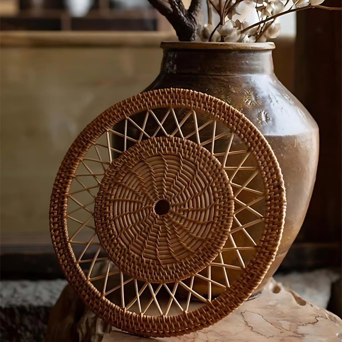 Découvrez la déco murale ronde en rotin tressé pour une touche naturelle et bohème à votre intérieur.