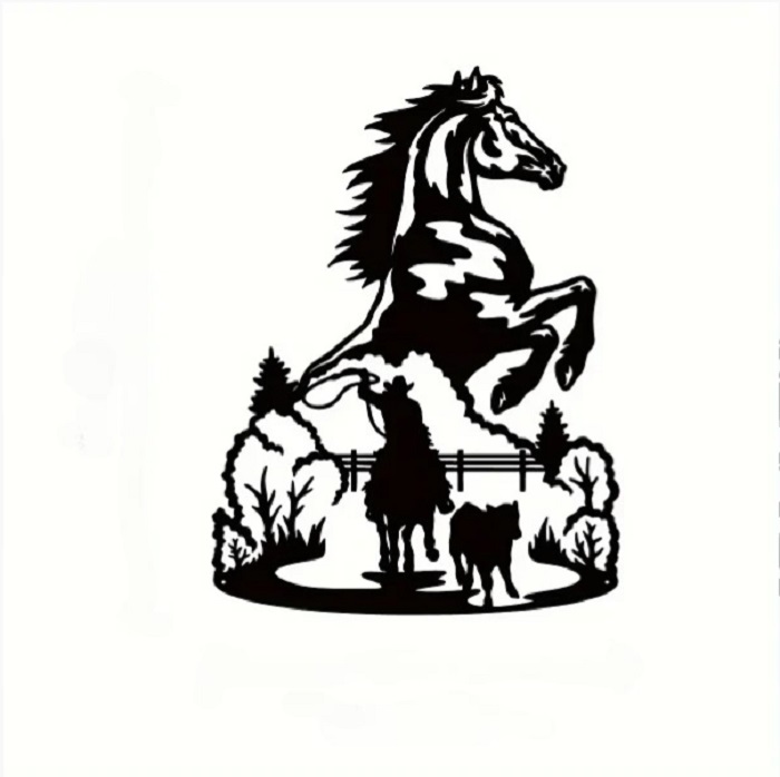 Décoration murale en métal d’un cheval avec cowboy: Une qualité supérieure