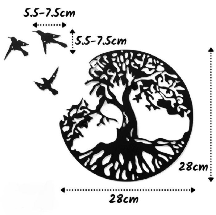 Détails techniques et design de la Décoration Murale Métal Noir Arbre de Vie Et Oiseaux