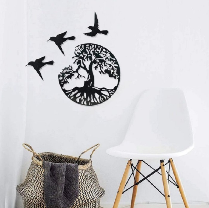Créez une ambiance harmonieuse avec la Décoration Murale Métal Noir Arbre de Vie Et Oiseaux