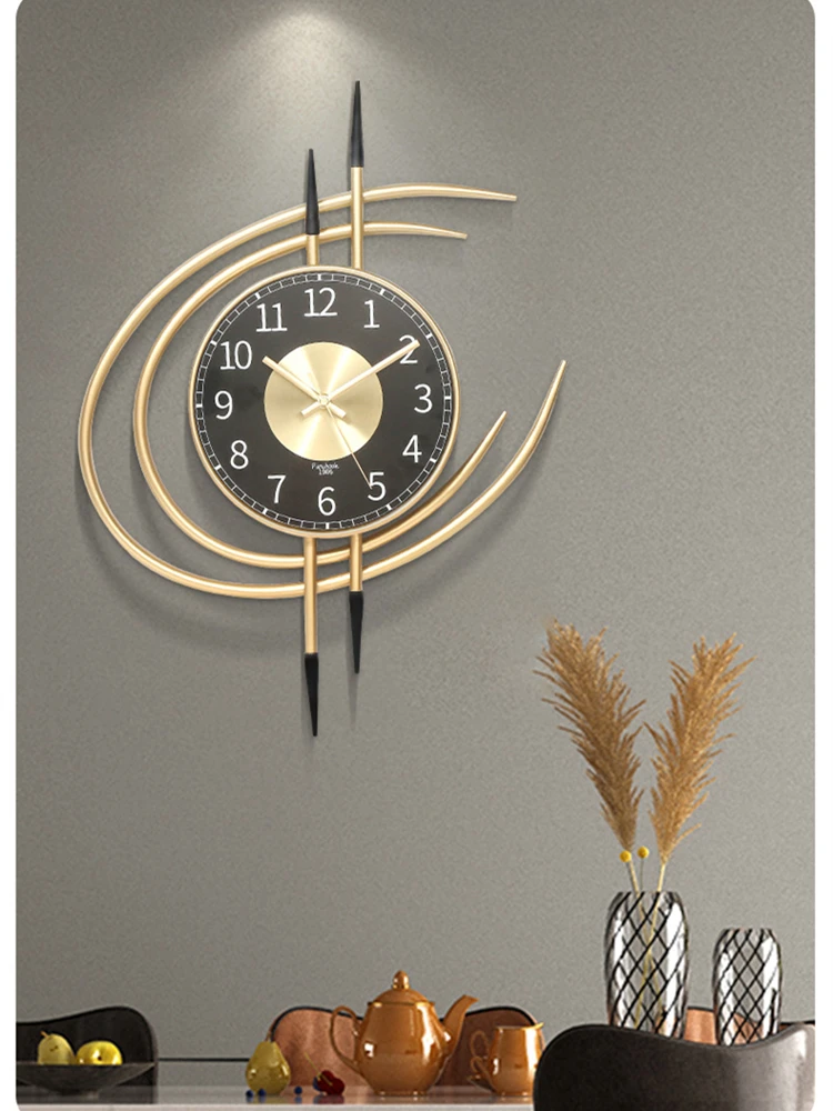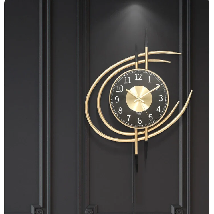L’horloge murale en métal avec cadran noir et décoration dorée est un reflet parfait du style nordique moderne, ajoutant un luxe minimaliste aux intérieurs contemporains. Son design épuré et ses finitions dorées attirent les regards et en font un ajout précieux à n’importe quel style de décoration intérieure.