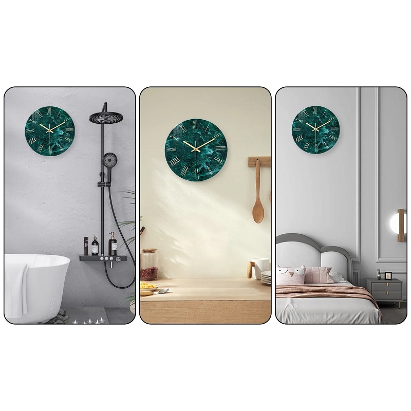 Optez pour l’horloge murale en verre trempé à motif marbré pour une décoration moderne