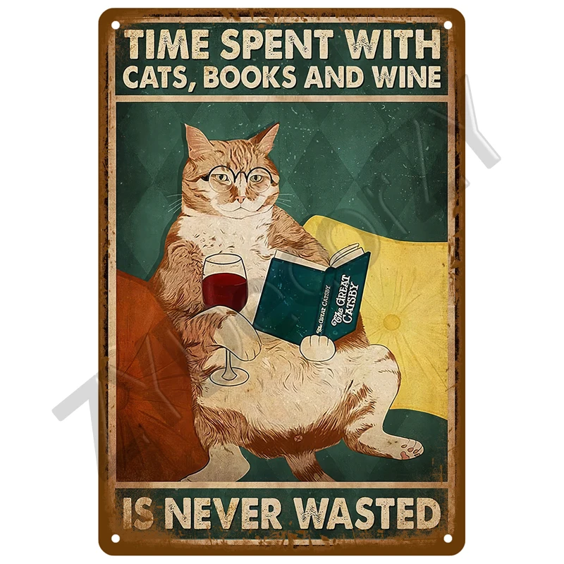 Plaque décorative murale Time Spent With Cats, Books And Wine
